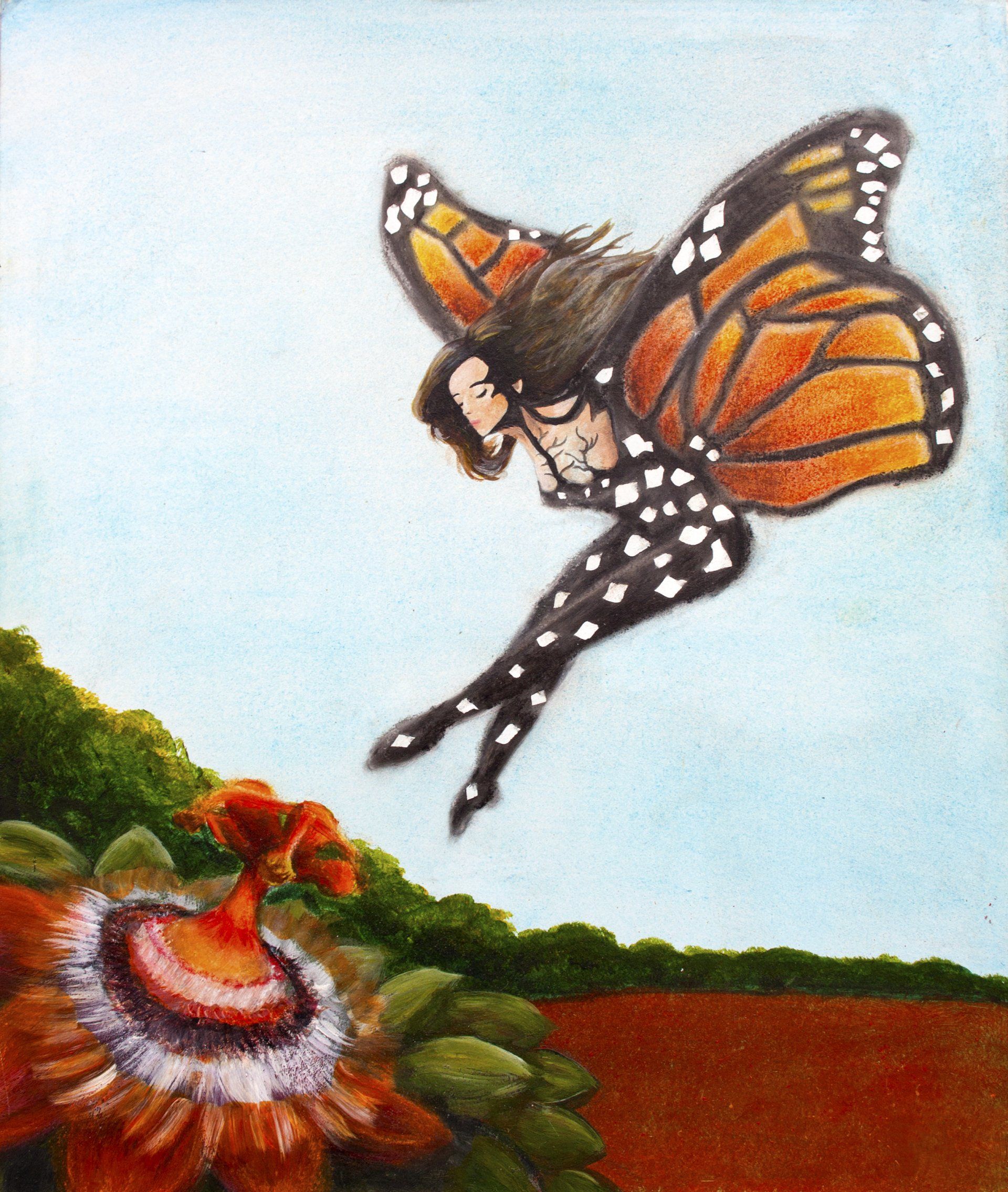 From my original painting of The Butterfly Violin I began to develop the idea of the butterfly lady to convey the need within myself to gain confidence, be happy and free, to express myself and my passion and to, one day, explore the world.