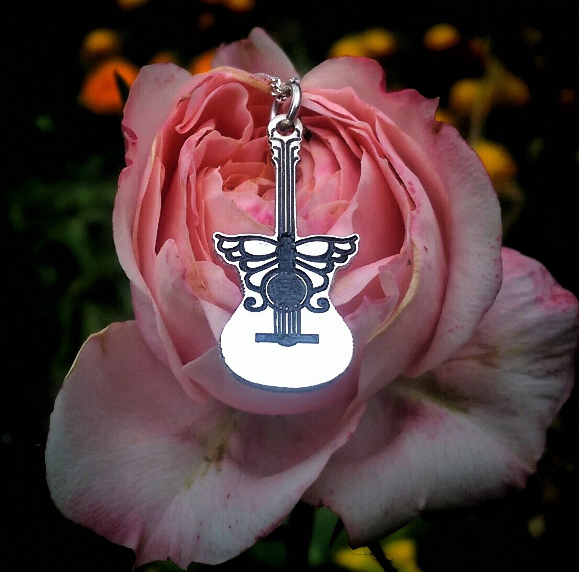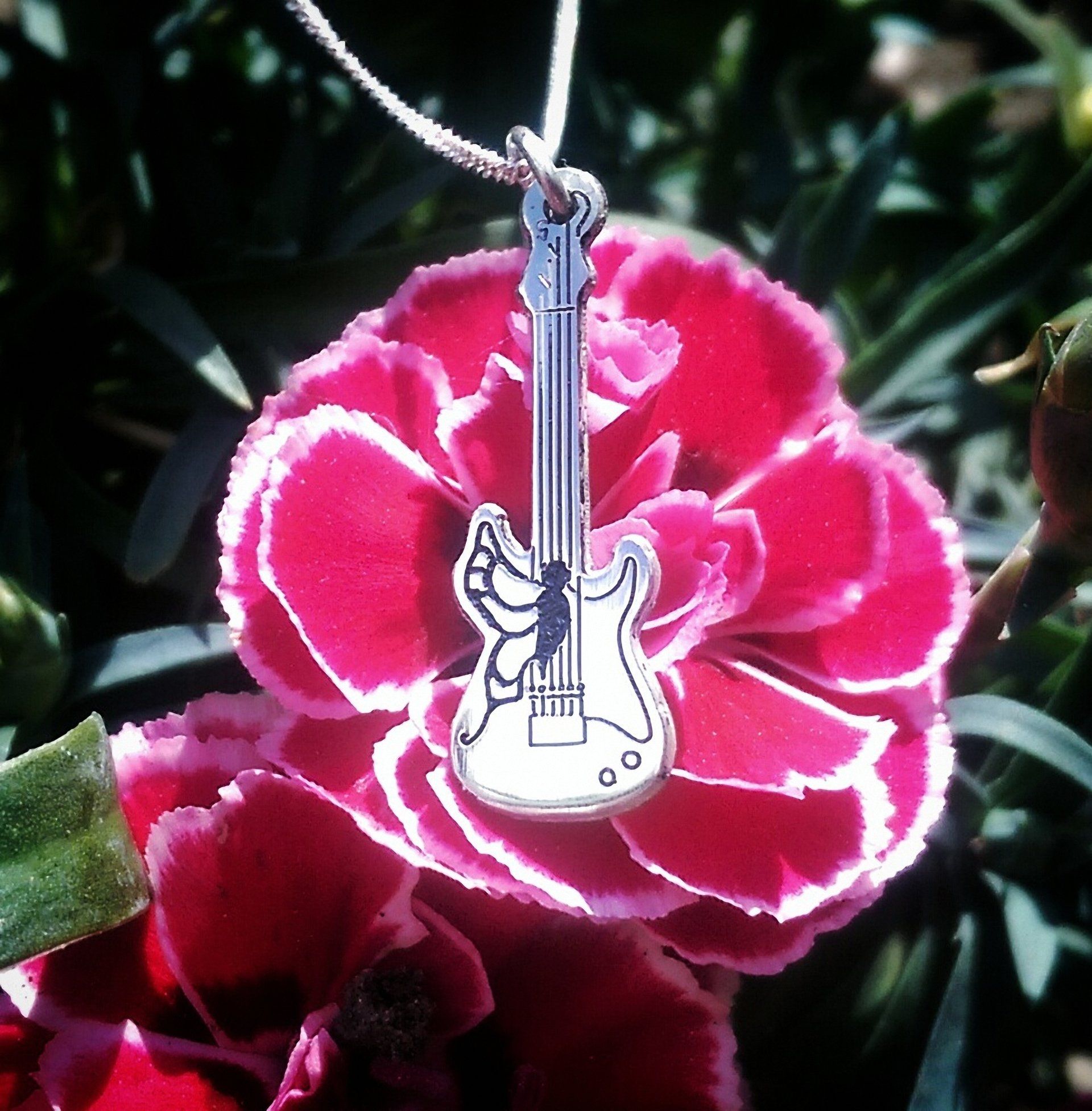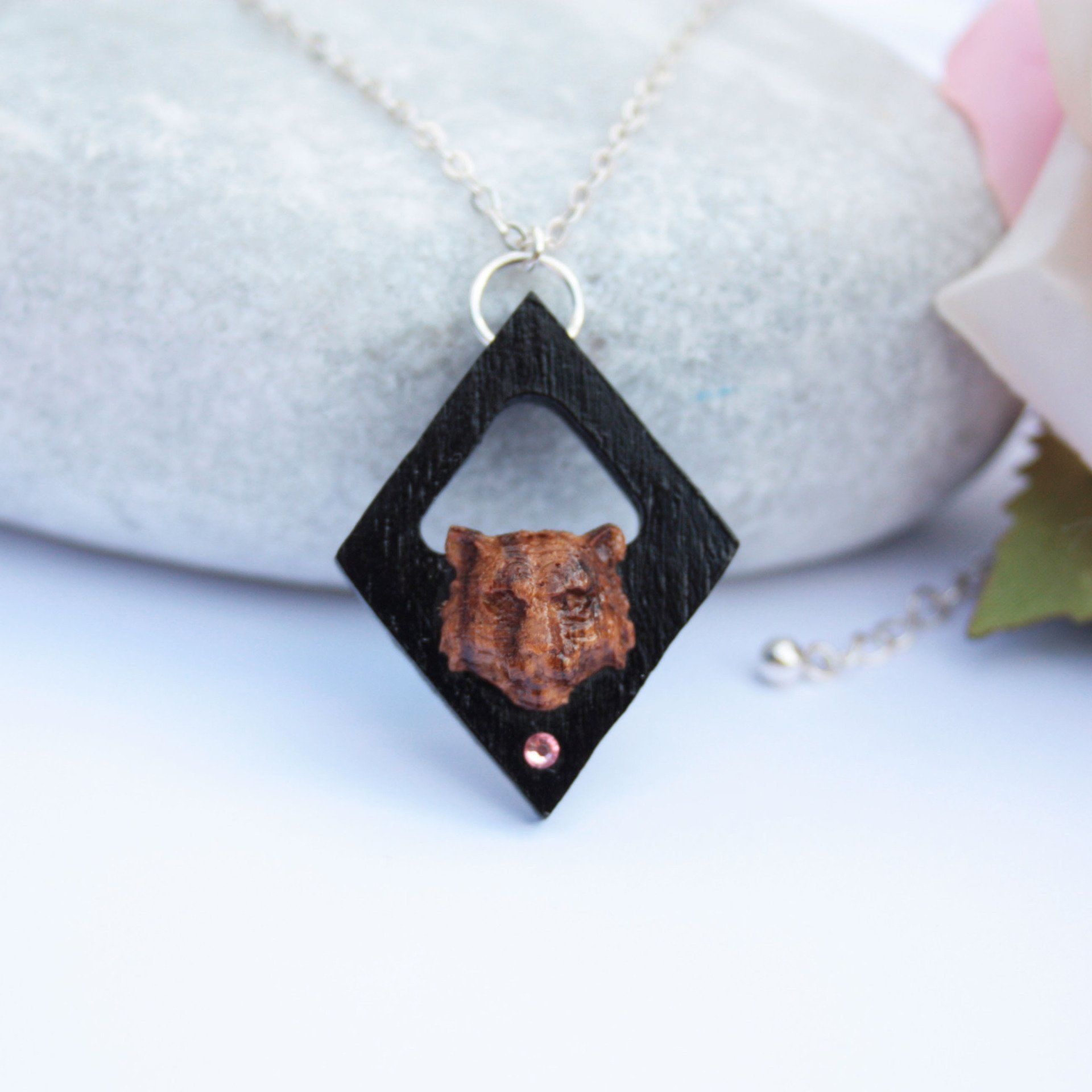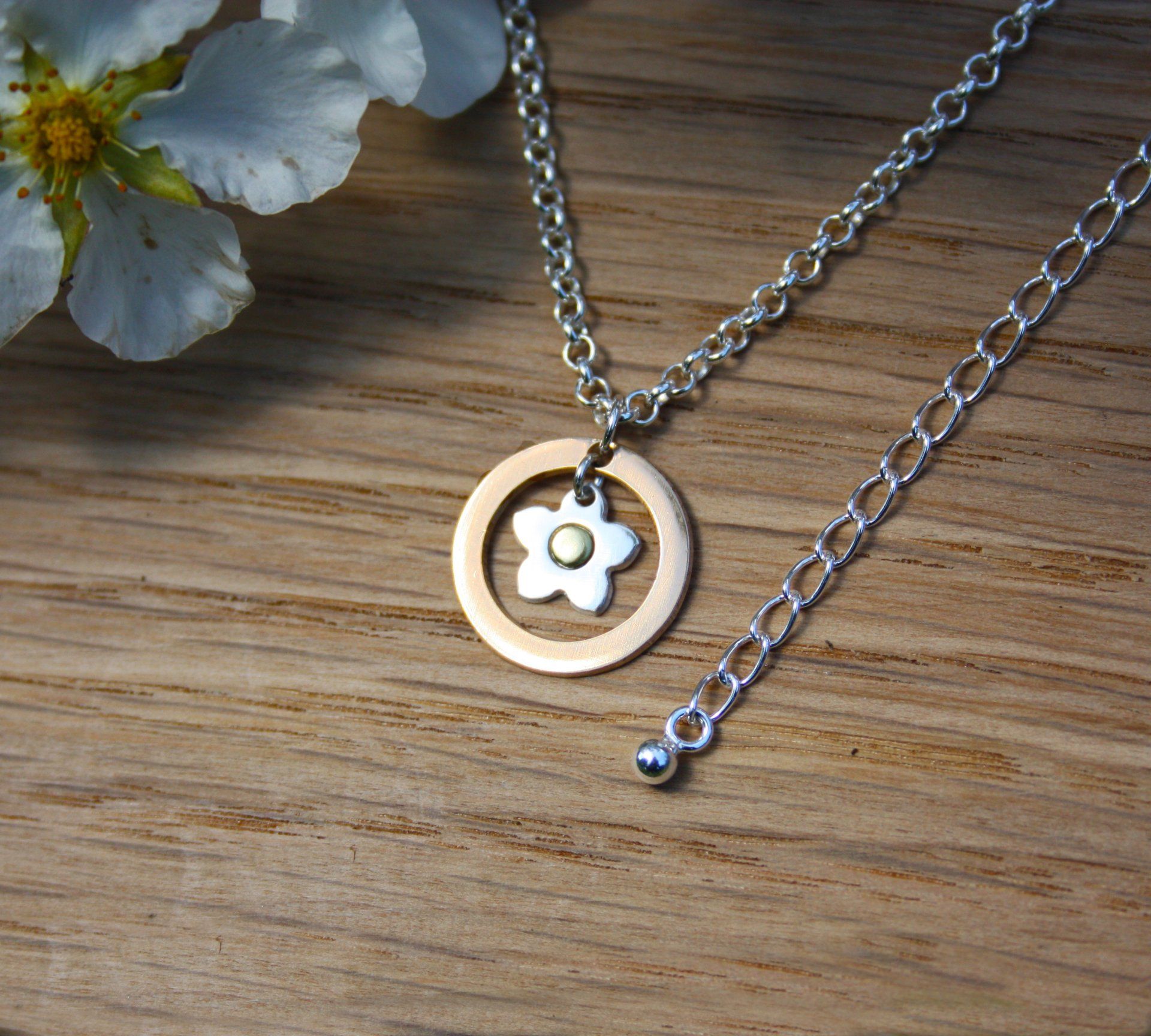 African Padauk, Zebrano and Gilding Brass Exotic Hardwood Necklace on Sterling Silver Chain